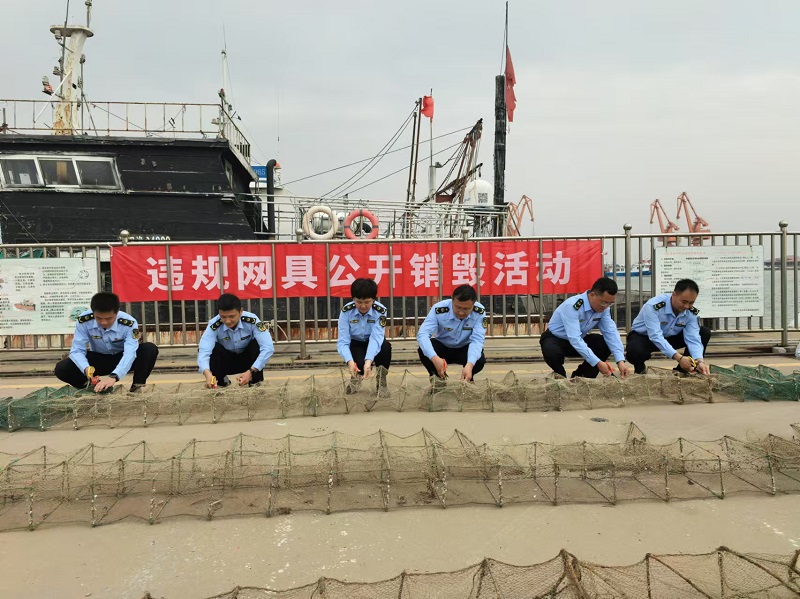 仪式结束后,各部门在现场共同开展了“违规网具公开销毁活动”,活动充分彰显了“亮剑”执法护渔、守护“蓝色粮仓”的坚定决心。