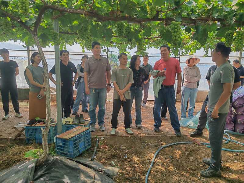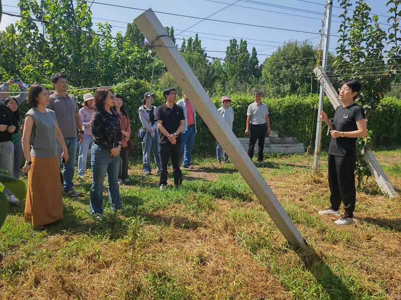 在核桃、梨和葡萄资源圃以及葡萄高效栽培示范点考察交流时,林果所栽培研究室主任杨丽芳介绍了特色林果种质资源库建设及梨标准化栽培技术示范情况,市林果产业技术体系副首席专家商佳胤介绍了葡萄种质资源创新成果及棚架高效栽培技术示范情况。