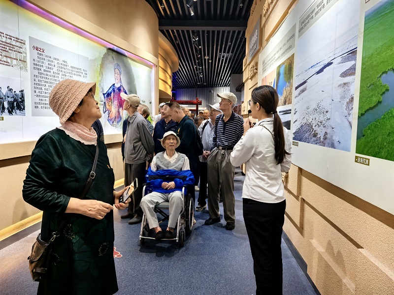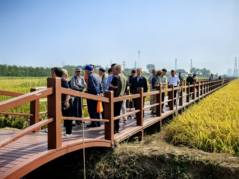 在小站稻会馆种植核心区,秋日的稻浪翻滚出金色画卷。老同志们登上观景台,远眺“以稻为笔、以田为卷”的特色稻田画,近处荷花塘与稻田相映成趣,尽显生态种植魅力。在这里,老同志们走走停停,谈乡村全面振兴宏伟蓝图,聊幸福晚年生活,享受习习秋风,在稻田画间拍照打卡,实地感受天津现代化农业发展的丰硕成果和乡村振兴的巨大成就,共享金秋憧憬。