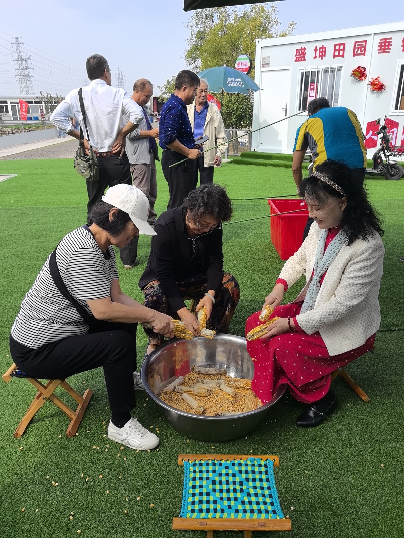 在盛坤田园家庭农场,开启丰富的趣味体验环节。稻作知识问答环节,大家围绕水稻生长周期、种植技巧等问题积极抢答,现场氛围热烈;趣味手工玉米脱粒体验中,老干部们重拾儿时记忆,双手熟练地搓动玉米棒,金黄的玉米粒簌簌落下,欢声笑语充满现场;钓螃蟹活动更是将气氛推向高潮,大家手持钓竿耐心等待,不时交流垂钓技巧,收获螃蟹时的惊喜欢呼此起彼伏。