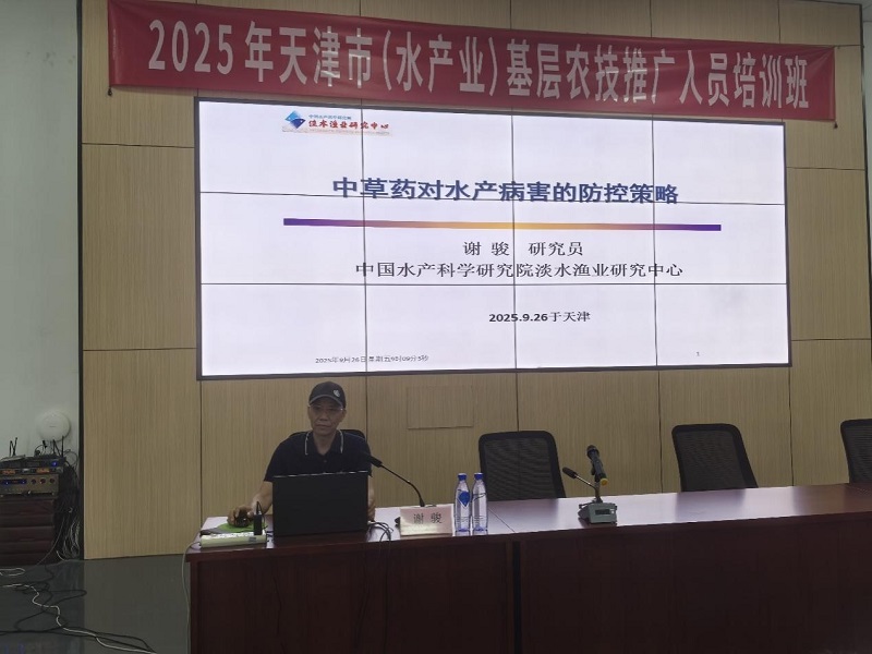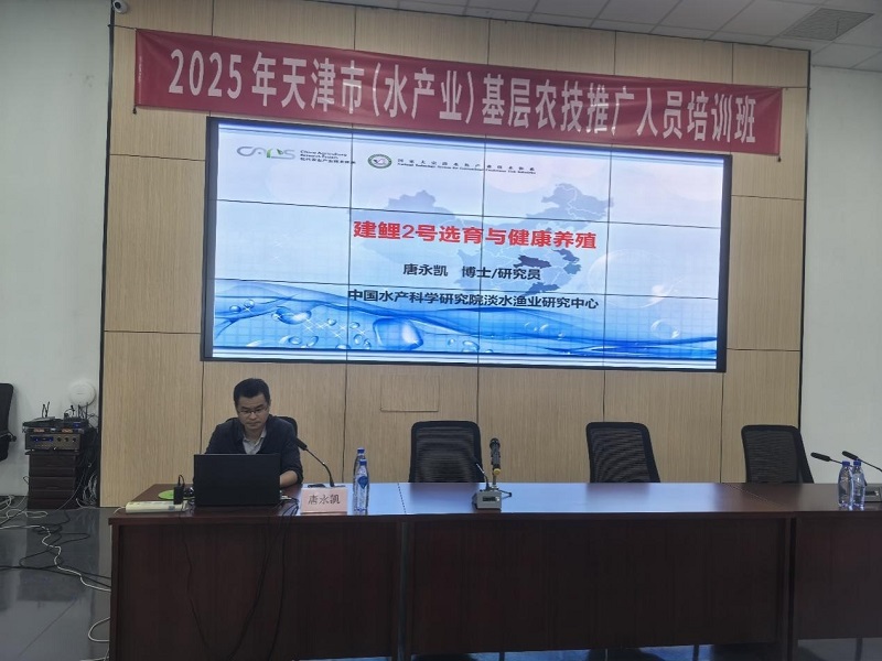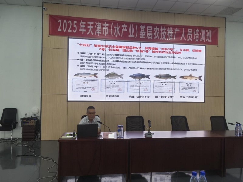 近日,国家大宗淡水鱼产业技术体系首席科学家朱健研究员携三名岗位科学家,赴天津开展2025年天津市(水产业)基层农技推广人员培训班,为天津市各涉农区渔业工作者、养殖场(户)带来一场聚焦产业前沿成果与实用技术的专业培训,切实推动国家大宗淡水鱼产业先进技术向基层落地。