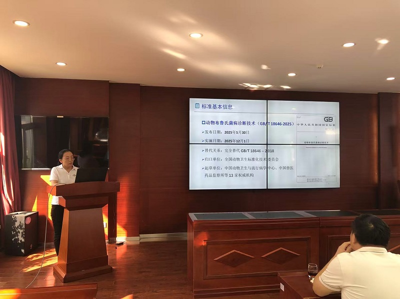 此次培训邀请动物防疫科郝晓芳博士对《动物布鲁氏菌病诊断技术》(GB/T18646-2025)进行了深入解读,详细阐述了布鲁氏菌病临床诊断、病原学诊断和免疫学诊断的关键技术要点,并结合案例,解析新国标在实际诊断工作中的应用场景与操作要求。会上,大家积极分享自己在布鲁氏菌病诊断工作中的经验与遇到的问题,并就新国标实施后可能面临的技术难点、如何提高诊断效率与准确性等话题展开热烈讨论,通过思维碰撞产生诸多富有建设性的想法,为后续工作的优化提供了新思路。公共卫生科科长李颖、动物防疫科科长朱向东分别对新国标的修订背景和理解应用做了总结发言。