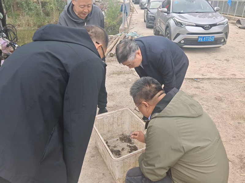 近日,市农业农村委渔业管理处、天津农学院、天津师范大学赴宁河区就七里海河蟹联合育种攻关项目开展现场指导服务。指导服务组实地参观了天津宁河七里海河蟹产业有限公司蟹小七驿站基地,详细了解河蟹亲本选育、苗种培育及育种试验等环节的推进情况。