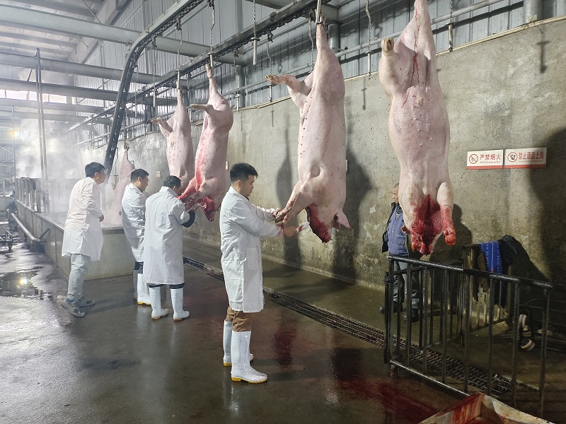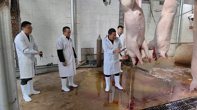 本次集训以拓宽参赛选手兽医卫生理论知识面为重点,聚焦技能操作考核中的薄弱环节,在生猪屠宰生产线上展开实战化训练,选手们围绕头蹄、咬肌、内脏、胴体、旋毛虫等5个同步检疫岗位反复练习,查漏补缺,力求每一步都做到操作熟练准确,规范严谨。