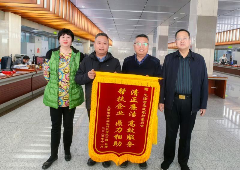 12月2日,天津市吉丰农业科技有限公司负责人专程来到市农业农村委驻市政务服务中心窗口部门,将一面饱含感激之情的锦旗送到政务服务处工作人员手中,对部门主动作为、精准高效解决企业发展难题表示衷心感谢。